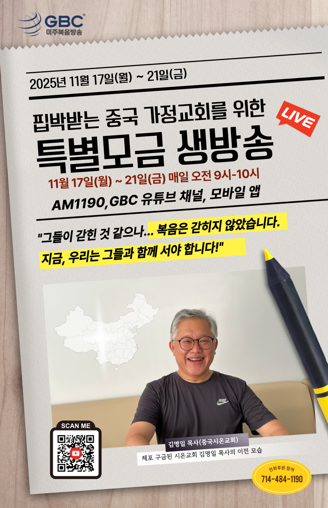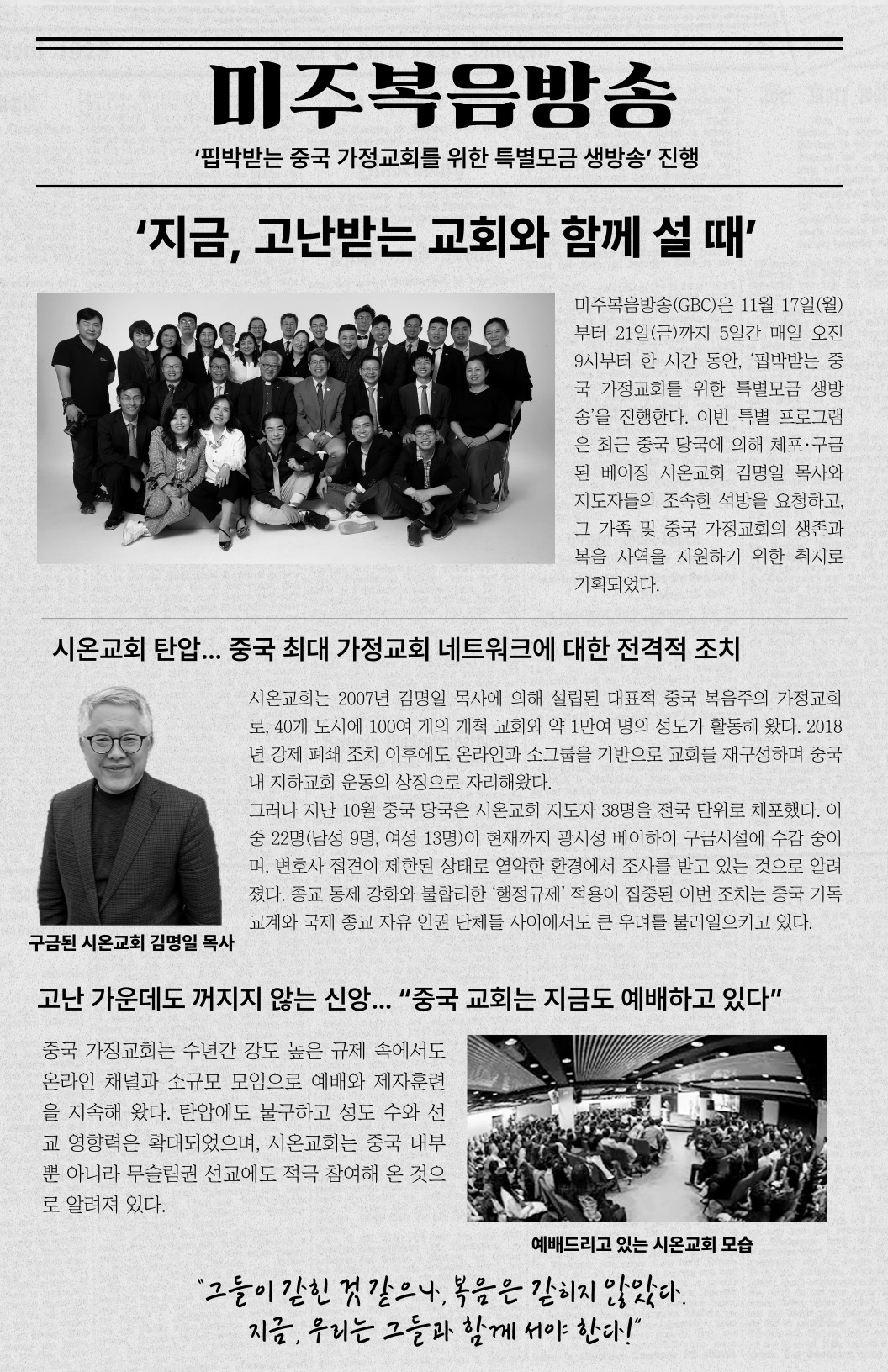 - 핍박받는 중국 가정교회를 위한 특별모금 생방송