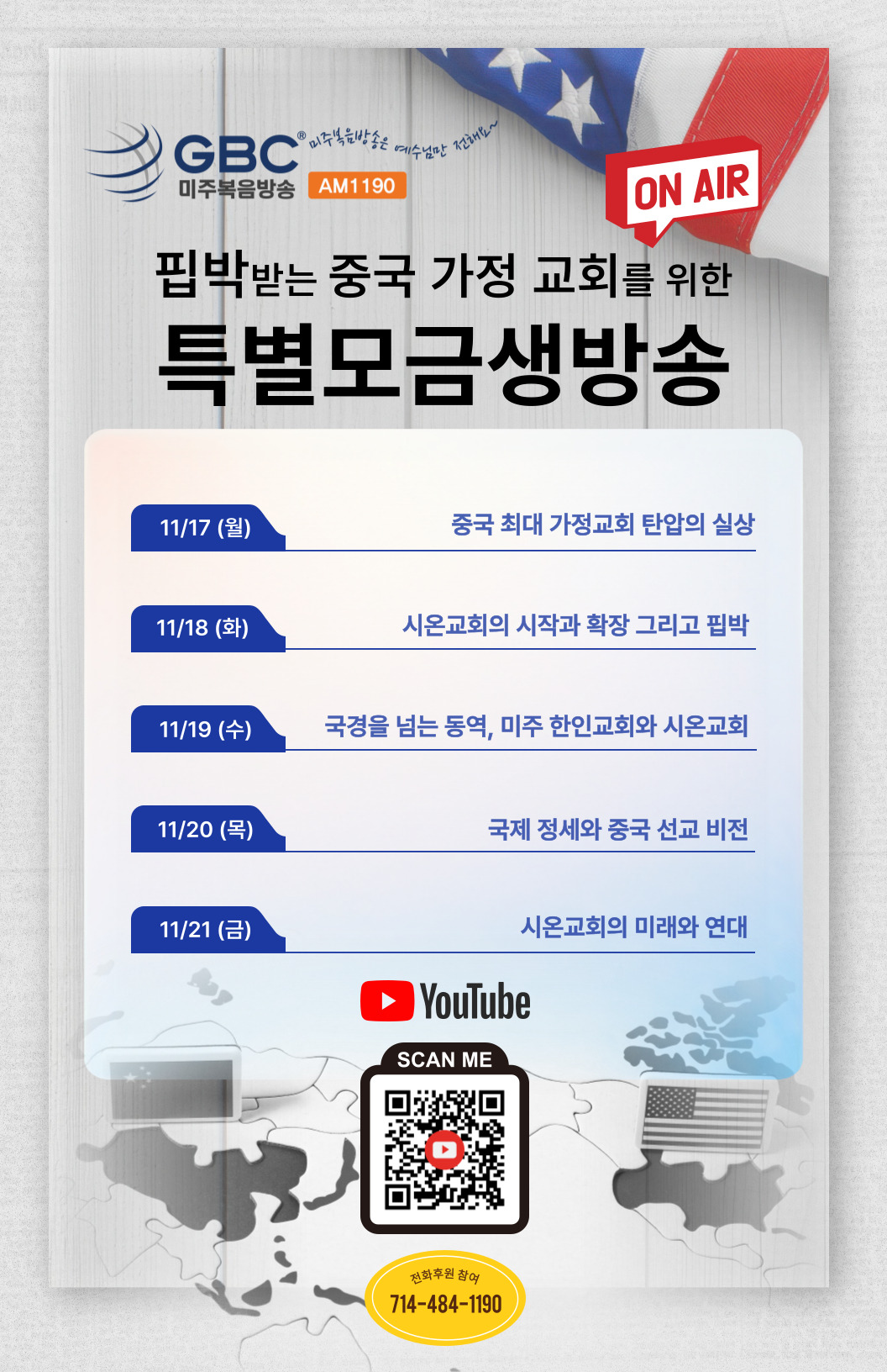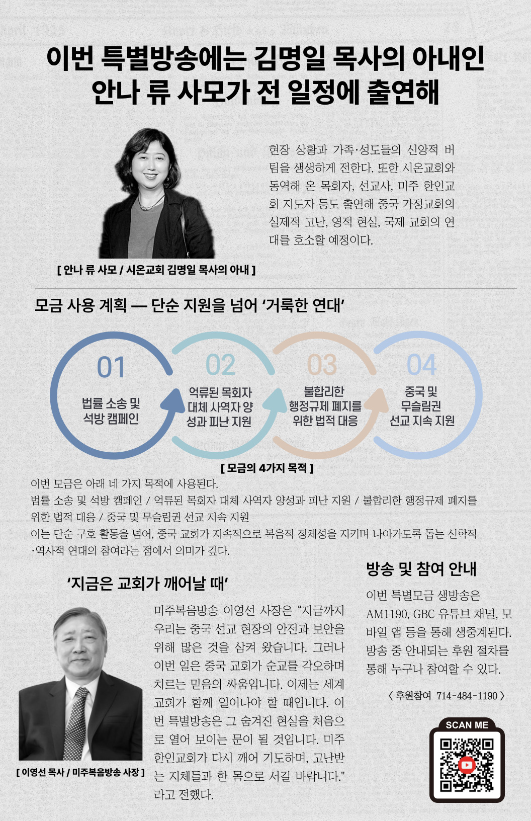 - 핍박받는 중국 가정교회를 위한 특별모금 생방송